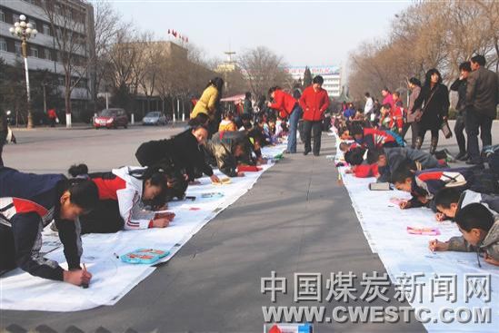 当天,来自阳煤集团五矿各小学和幼儿院的100多名孩子,参加了画安全活动,天真活泼的孩子们,思路开阔,想象丰富,尽能画出井下的液压支架、煤溜皮带、电器设备、瓦斯仪器等,名叫郝振宇的小孩,才4岁就画出了井下工作面的画面,拿不稳笔的小手,一笔一画地写上了“不标准不生产,先安全后生产”的大字。观看的叔叔、阿姨们都为之敬佩,把希望的目光对准了他的安全画。