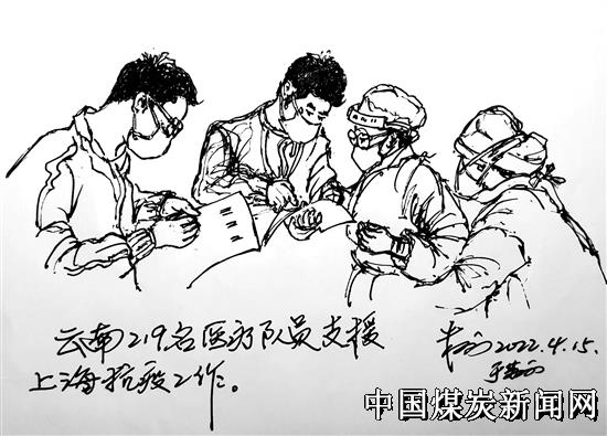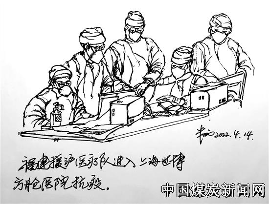 【本网讯】本网通讯员朱福洲仍然在苏州作画“每日一画”,异地采风继续反映疫情防控工作,这次的主题是围绕全国白衣战士支援上海,传来他的作品之十。